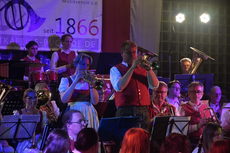 Eine super Stimmung war am Samstag beim alljährlichen "Bockbierfest" der Stadtkapelle im Stadtsaal! Das Publikum sang mit und stand auf den Bänken. Besonders viel Applaus gab es für Yves Karmann und Michael Link an den Stabspielen bei "Zirkus Renz" und für unsere Schlagzeugerinnen und Schlagzeuger beim Boomwhacker-Solo im Trio der Südböhmischen Polka. Unsere Sänger Helmut und Walter und unsere Sängerin Isabell begeisterten mit Hits von der Vogelwiese über "Ein Bett im Kornfeld" bis "Simply the Best" und "Ich war noch niemals in New York".