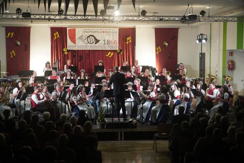 Eröffnet hat die Buchloer Stadtkapelle unter der Leitung von Dirigent Stefan Reggel ihre diesjährigen Jahresschlusskonzerte mit der "Concert Prelude" von Philip Sparke. In der ersten Konzerthälfte reiste das Publikum mit dem Orchester zurück zum Auseinanderdriften der Kontinente (At the Break of Gondwana, Benjamin Yeo) und hörte anspruchsvolle Variationen über ein koreanisches Volkslied (Variations on a Korean Folk Song, John Barnes Chance). In "Noah's Ark" von Bert Appermont wird musikalisch erzählt, wie die Tiere auf die Arche wandern und der Sturm aufzieht, bis am Ende des Werks das Lied der Hoffnung erklingt. Nach der Game-Musik zu Civilazation VI (Sogno di Volare, Christopher Tin/Matt Conaway) stand die Klarinette im Mittelpunkt. Drei B-Klarinetten (Sylvia Gruber, Angela Stärk, Monika Bögle) und eine Bass-Klarinette (Jakob Seidl) spielten das Solo-Stück "Latin Woods" von Mario Bürki. In den "Walt Disney Pictures" (Manfred Schneider) waren Melodien aus König der Löwen, Arielle und Aladdin zu hören. In der Zugabe "El cumbanchero" (Rafael Hernandez/Naohiro Iwai) ließen die (verkleideten) Schlagzeuger hören, was sie können.