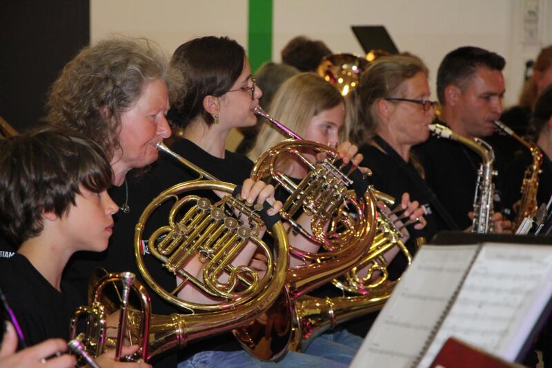 Den Start machten die zwei Vororchester des Vereins, beide unter der Leitung von Jürgen Herrmann. Highlights im Programm des Vororchesters waren die Filmmusik aus Forrest Gump und die Amboss-Polka, gespielt auf einer Schiene und mit klatschender Unterstützung durch das Publikum. Das Erwachsenenvororchester übernahm die Bühne und zeigte sein Können. Der erwachsene Nachwuchs begeisterte die Zuhörerinnen und Zuhörer unter anderem mit Musik aus dem Film Jurassic Park und dem Hit Summer of 69.