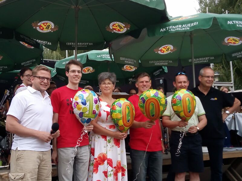 Die Bläserklasse an Mittelschule und Gymnasium Buchloe freut sich über EUR 1.000,-- vom Rotary Club Buchloe (RCB) für neue Instrumente. Stellvertretend für den Musikverein Stadtkapelle Buchloe e.V. nahmen 1. Kassier Julian Seethaler und 1. Vorsitzender Jürgen Herrmann die Spende symbolisch auf dem von 19 Vereinen, u.a. der Stadtkapelle, ausgerichteten Buchloer Stadtfest 2018 entgegen.