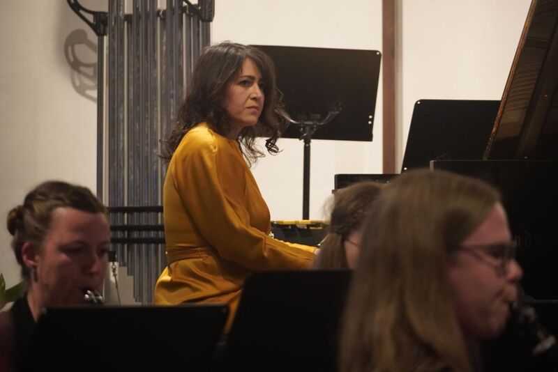 Einige Worte der anwesenden Komponistin führten in das Werk mit dem Titel „Gennach- Wellen“ ein. Das Motiv der Komposition wurde bestimmt durch die Buchstaben, bzw. Töne G,E,A,C,H, die im namengebenden Fluss durch Buchloe vorkommen und lautmalerisch in verschiedensten Variationen verwoben wurde, sodass man das Rauschen und Gluckern der Gennach, sowie die dort beheimateten Vögel wahrnehmen konnte.