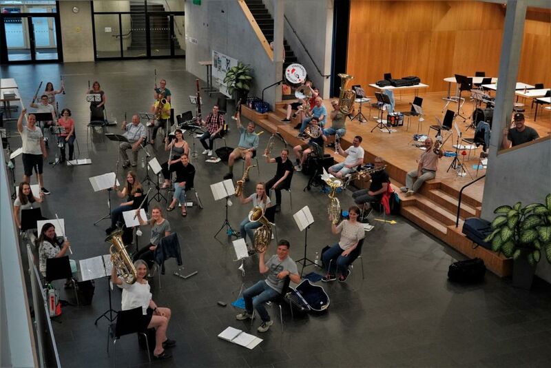 Nach über sieben Monaten Zwangspause probt die Buchloer Stadtkapelle wieder! Wegen des einzuhaltenden Abstands finden die Proben derzeit im Gymnasium Buchloe statt.